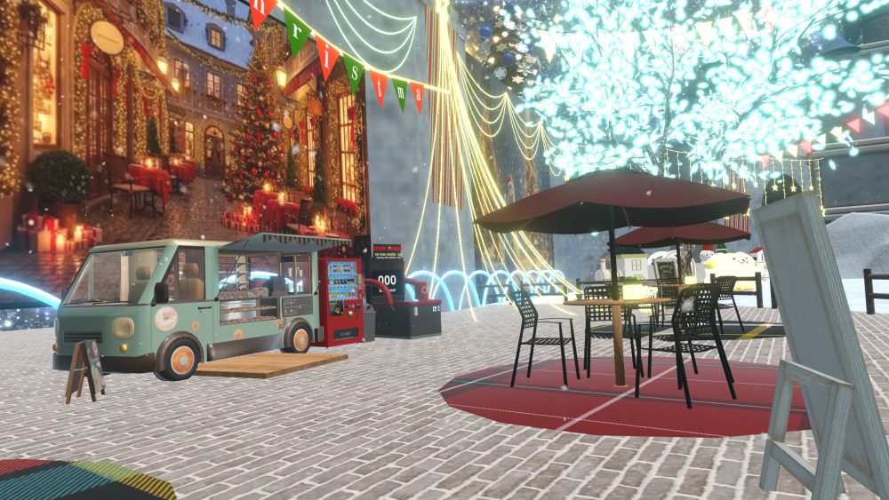 ケーキなどのお菓子も置いてあり、ステージのような場所もあるので、クリスマスライブやイベントなどを考えてる人にもよさそうでした。人数も60人まで入れるので、クリスマスに多くのフレンドと集まりたい人向けのワールドだと思います。