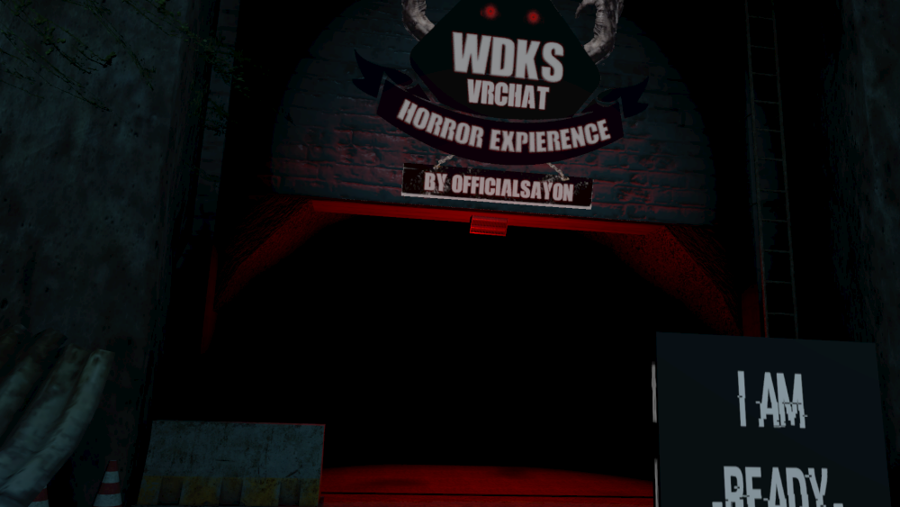 あとはよくある点滅する光があるよ!とかジャンプスケアとか追いかけられる恐怖とか大きな音があるよ!みたいなホラーワールドに良くある注意書きですね。それに同意(I AM READY)すれば扉が開きます。