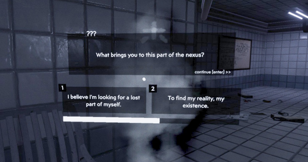 最初は暗い海のような場所からスタートします。建物の中に入ると「眠りますか?」と英語で聞かれるので眠るを選択し