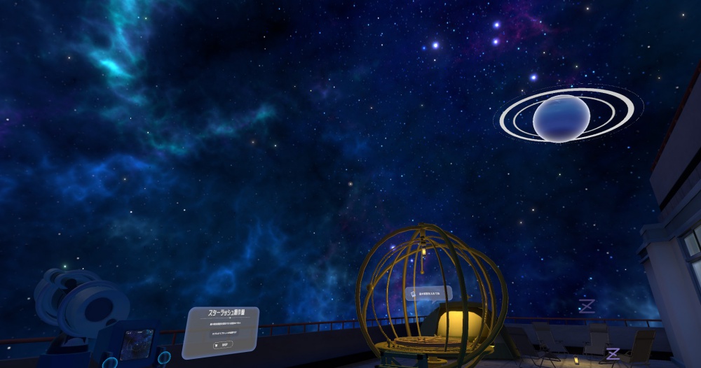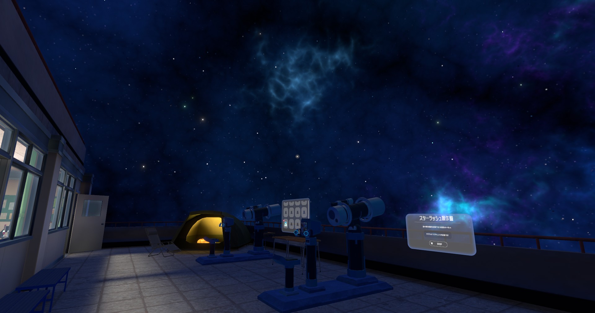 教室の外に出ると、天体観測ができる場所があります。写真を撮ってアムアを召喚してみましょう。