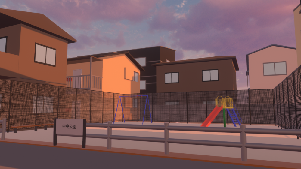 夕方の学校の教室からスタートです。どうやらこの辺りで不審者情報があったようです。学校から帰るときは寄り道せず、まっすぐお家へ帰りましょう。あなたは小学生なので身長は小さめのアバターで遊ぶことをお勧めします。