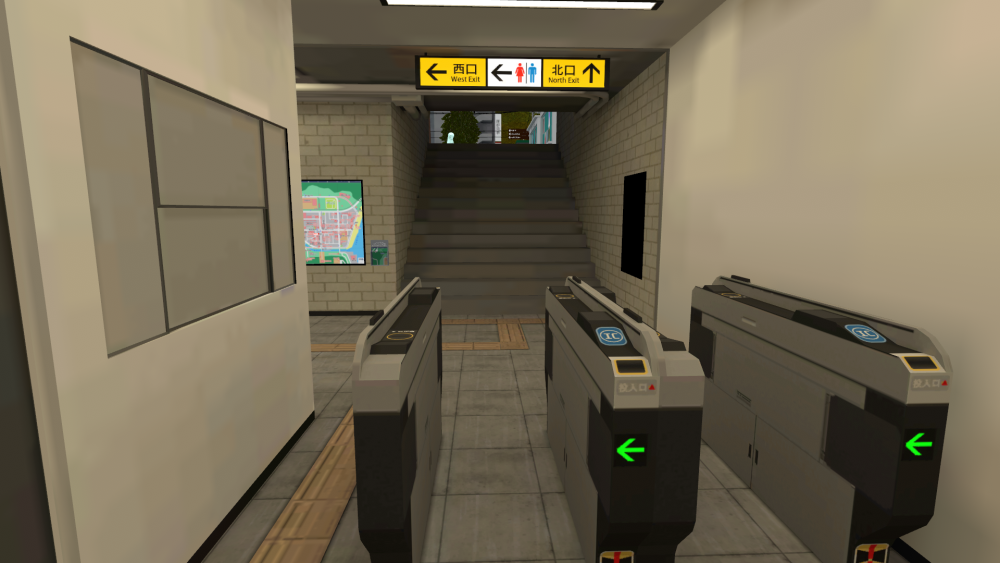最初は駅からスタートで、階段を上がるとこのワールドのマップやローカルの設定ができるパネルがあります。