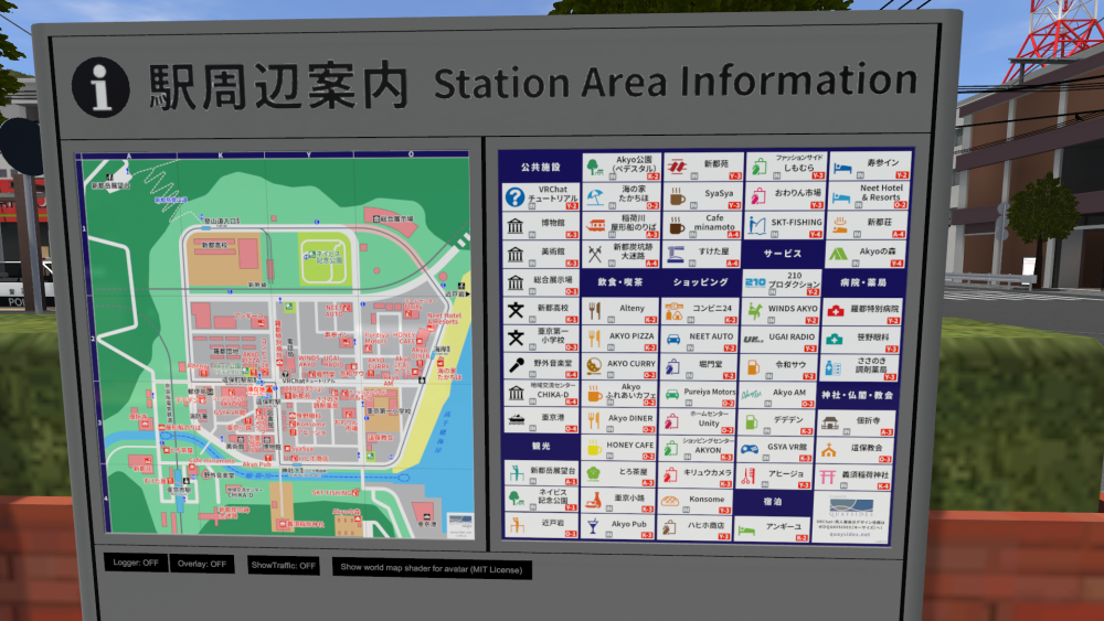 個人的におすすめなのは、駅を出てすぐのところにある公園です。そこにはAkyoアバターのペデスタルが500以上あります。読み込むとかなり重いですが、Akyoファンにはかなり嬉しい場所ですね。